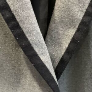 Grey Merona blazer with navy ribbon detail. One button. Light pilling on ribbon. Only visible up close