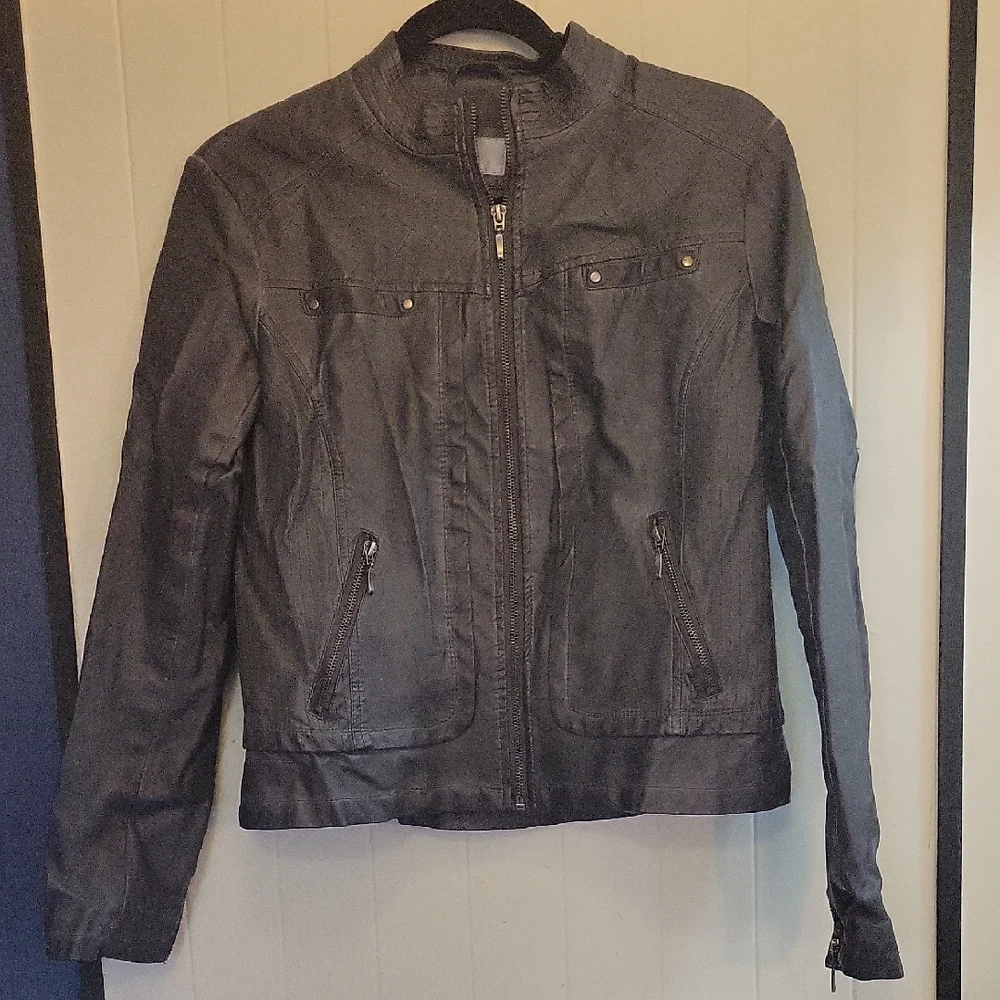 'Motorcycle' Jacket style. Front and Sleeve zippers.
