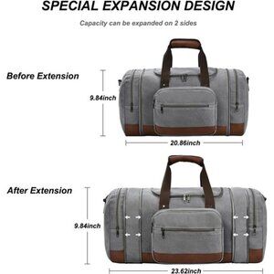 🧿Expandable Design: This carry on bag is (L) 20.87 x (W) 11.81 x (H) 10.24 inches in size, with 2 side zippers pulled down to extend the weekender bag to 23.62 inches in length. The travel duffel bags can also be carried on an airplane to facilitate your travel.