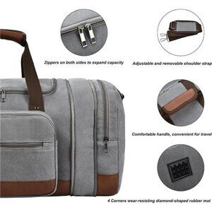 Grey+Toiletry Bag , 50L Canvas Travel Duffel Bags Overnight Weekend