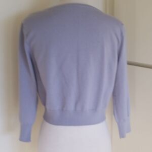 Grey Knit and Silver Sequins, V Neck Cropped Cardigan. Brand unknown, Cotton Spandex. Casual or Dressy.