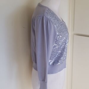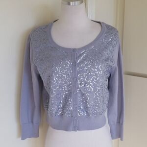 Grey cropped button down Sequin Cardigan,3/4 Slv,S