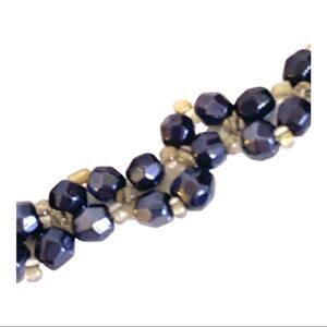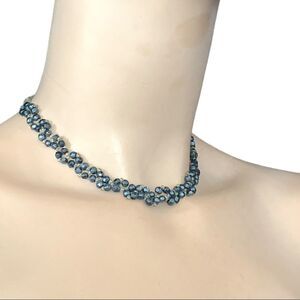 Beautiful faceted hematite and crystal glass beaded necklace in a braided design, choker style measures 16" in total length, the beaded part is 11" can be adjusted to enhance your neck as you wish..really nice and very unusual..Please see all photos for full description