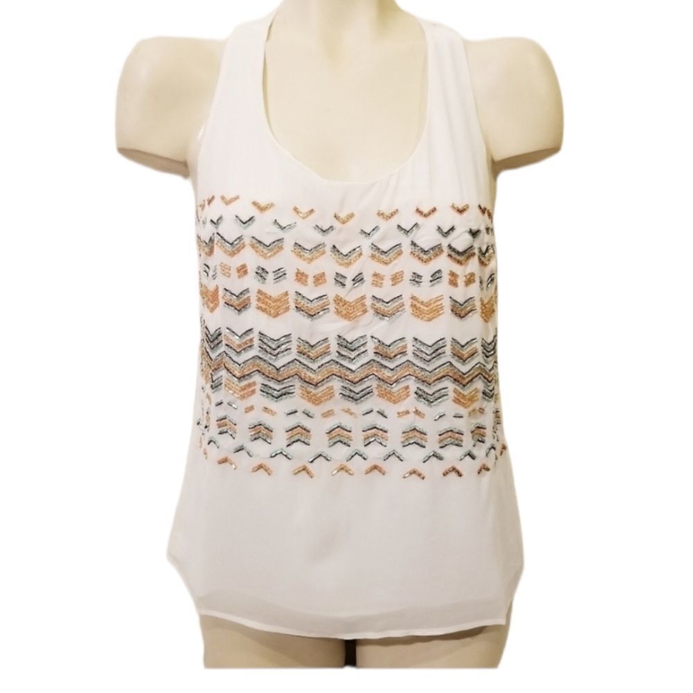 Greylin Beaded Geometric Pattern Racerback Tank Top size XS 100% Polyester NWT