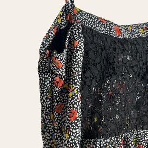 Greylin Black Ditsy Floral Speckled Peplum Camisole Top Size Small