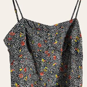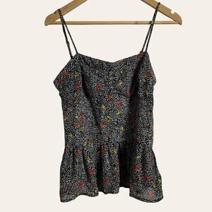 Greylin Black Ditsy Floral Speckled Peplum Camisole Top Size Small
