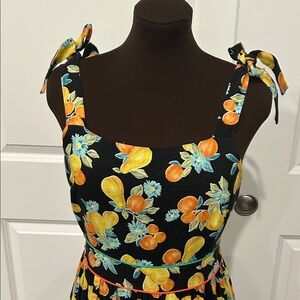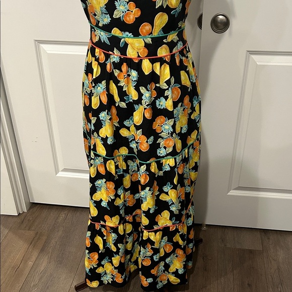 Greylin Black Orange Lemon Fruit Tiered Linen Blend Dress Size Medium