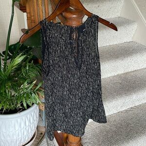 This stylish tank top from Greylin features a unique asymmetrical design offering a modern twist to a classic sleeveless style. The black and white color palette adds a versatile touch, making it perfect for both casual and chic occasions. Crafted from a comfortable fabric blend, it provides a relaxed fit ideal for everyday wear. Size small amazing pre loved condition