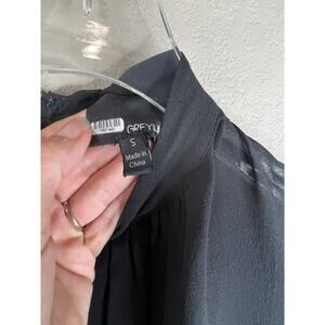 Greylin Womens Long Sleeve Mock Neck Sheer Blouse Size S Gray Back Zip Tie