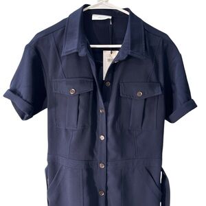 Greylin Blue Jumpsuit with Waist Tie and Short Sleeves