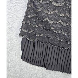 Greylin Camisole Women M Black Metallic Silver Sheer Tiered Sexy 20s Flapper
