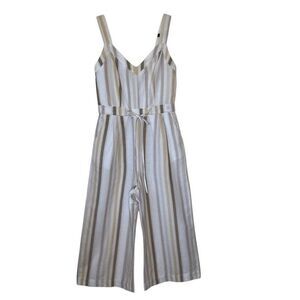 Greylin Lenox Ivory, Flax and Gray Linen Blend Wide Leg Jumpsuit Size S Coastal