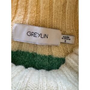 Greylin Megan Green Blue Fair Isle Striped Sweater Small Ombré Slouchy Sweater