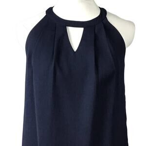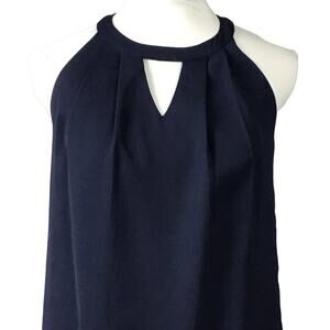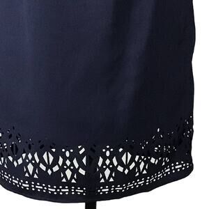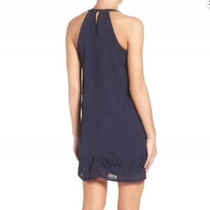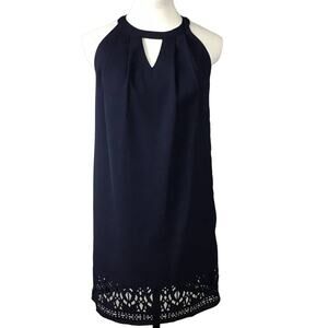 Greylin Melissa Laser Cut Deep Navy Blue Halter Shift Mini Dress sz XS