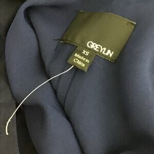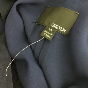 Greylin Laser Cut Deep Navy Blue Halter Shift Mini Dress sz XS. Gorgeous dress with fabulous drape thanks to the halter neck with tiny pleats at the front, rear button closure, pullover style. Laser cut at hemline, Dark navy blue, midnight blue. Style number 6102719, Melissa is the style name. No material tag but this fantastic dress is 100% polyester, fully lined with 100% polyester. Machine wash cold, line dry or dry clean. Perfect brand new condition, fabulous for all season, all occasion wear!