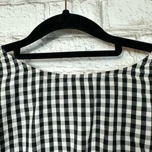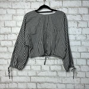 Greylin Millie Blouse Gingham Plaid Checker Top Tie Front Shirt Black White S