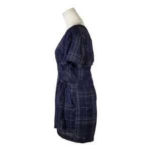 Greylin Navy Plaid Wrap Romper M Flutter Sleeve Tie Waist Chic Summer