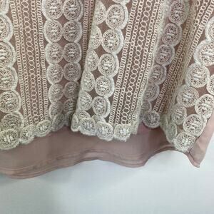 Greylin Pink Cream Lace Detail Sleeveless Tank Blouse Womens Size Large L