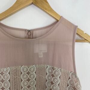 Blush pink and cream sleeveless blouse with lace detail. Sheer at chest.