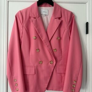 NWOT Great quality stylish pink blazer from Greylin with tortoise buttons. Pink and white stripe lining Perfect for a polished look. Great with denim! No rips tears or marks. Never worn! From a smoke-free home.