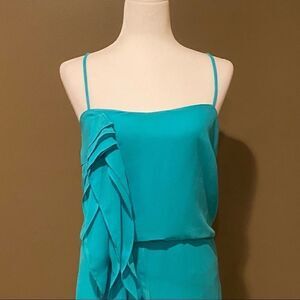 Greylin Teal Ruffled Spaghetti Strap Dress Sz Med