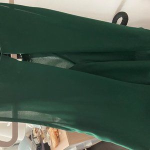 Greylin-stylish forest green sheer top with black and white detail at top with gold chain, and layered peekaboo detail in the back-has been minimally worn and has been dry cleaned.