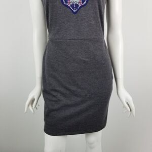 Greylin Gray Beaded Embelished Neckline Dress Sz M