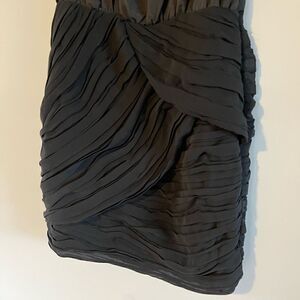 Gorgeous sleeveless dress from Greylin, size XS. Featuring sleeveless bodice with bust darts & raw hem, racerback detail, shirred/pleating to the fitted skirt with mini hem length, lined; excellent, like new condition, with plastic tag part still attached.