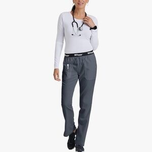 Grey’s anatomy scrub bottoms with waistband, graphite color. These pants are perfect for long shifts, offering a relaxed fit and soft fabric that ensures all-day comfort. These are incredibly comfortable and come from a smoke free, pet free home. Size 2XL