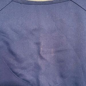 2 front pockets, Scrub top has a little discolored spot on the back neck as shown in picture..