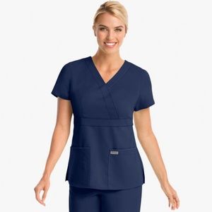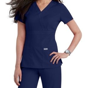 Grey's Anatomy by Barco Blue 3-Pocket Modern Fit Mock Wrap Medical Scrub…
