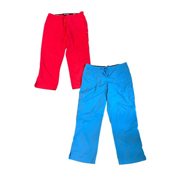 Greys Anatomy by Barco Scrub Pants 2XL Blue & Red Drawstring Waist Womens Lot 2