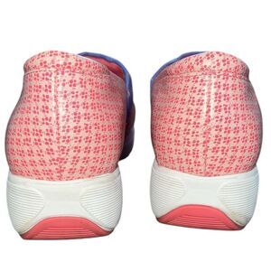 • Style: Comfortable slip-on loafers in a pink and purple design.