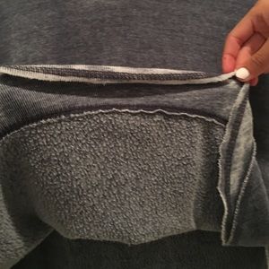 Greyish denim colored sweatshirt with slit sides. VERY FUSSY!!