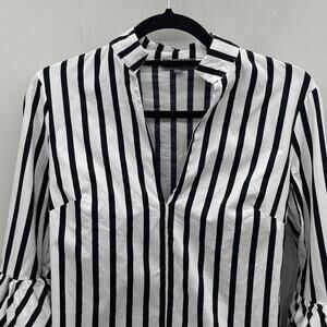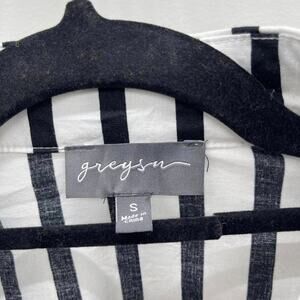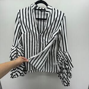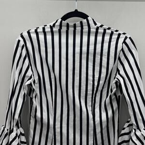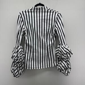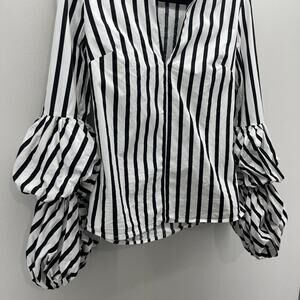 Greysn Black White Stripe Side Zipper Puff Balloon Sleeve Blouse