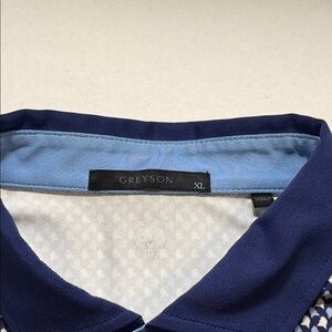 Greyson All Over Wolves Pattern Size XL Blue and White. Great pre owned condition. See pictures for measurements. Golf logo on left sleeve.