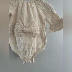 Greyson Collective Bow Waffle Knit Bubble Onsie creme beige Neutral