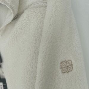 Greyson Eira Sherpa 1/2 Zip Pull Over in Dove White/Dogwood flower embroidery