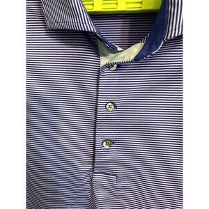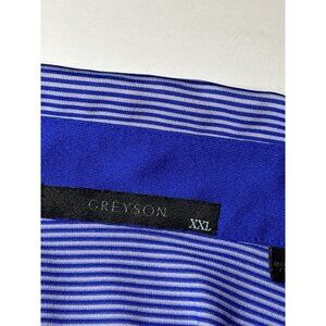 Greyson Men’s Golf Wolf Polo Shirt XXL Blue & White Stripe Stretch Performance