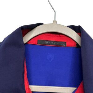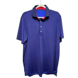 Greyson Men's Polo Shirt Blue Geometric Large Short Sleeve Wolf Golf Active