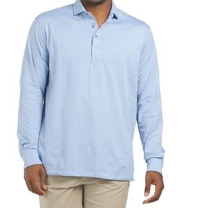 Greyson Mens size Omaha Long Sleeve Polo Wolf Blue Cotton Blend Cooling Fabric