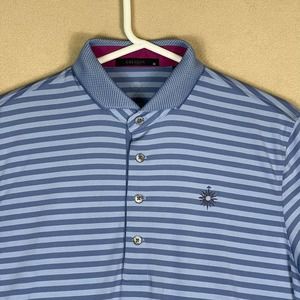 Greyson Polo Shirt Adult Medium Blue Striped Golf Rugby Preppy Short Sleeve Men's