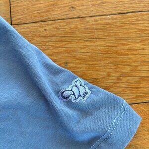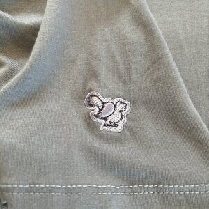 Has a bird logo on the left sleeve. Nice condition. Gray with light purple accents (on color and sleeve logo).