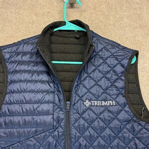 Greyson Quilted Puffer Vest Mens Small Navy Blue Full Zip Triumph Financial Logo