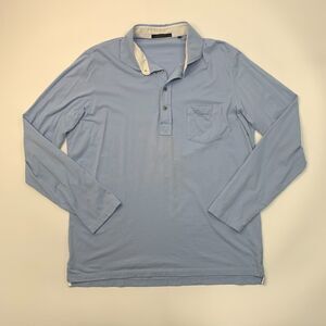 Greyson Spirit Polo Shirt Mens L Large Cloud Blue Long Sleeve Cotton Nylon Blend