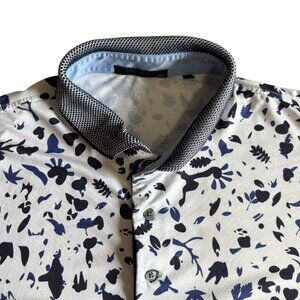Greyson XXL Men's Golf Polo Shirt White with Navy Blue Leaf Pattern