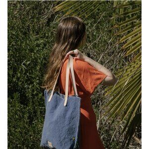 Gräf Lantz Hana Canvas Boat Bag Tote Bag Medium Beach Bag Frayed Raw Edge Blue