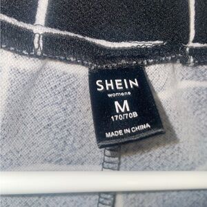 Stylish black and white pants with a grid pattern. Perfect for business casual settings. Comfortable and trendy.