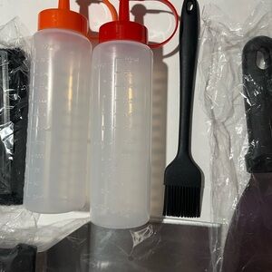 Enhance your grilling experience with the Griddle and BBQ Accessories Toolkit. Perfect for outdoor cooking and camping. Features a sleek black design.