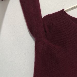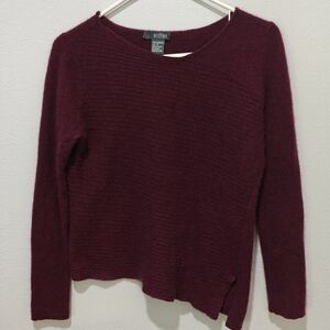 Griffen Cashmere Asymmetrical Sweater Medium Maroon Red Ribbed Long Sleeve